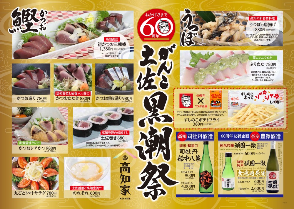 タマノイ酢様の「すしのこ」は販売60周年を迎えられます。がんこも創業60周年、これを記念したコラボ商品も!!