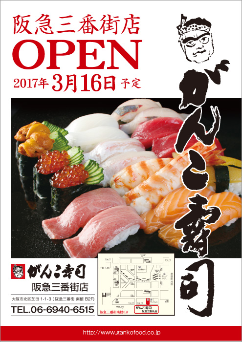 がんこ阪急三番街店が、2017年3月16日(木)にオープンいたします。
